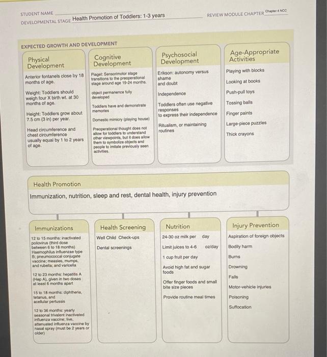 Student Name _____ De Velopmental Stage _____ Review Module Chapter _____ Active Learning Template: