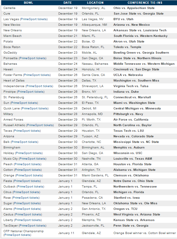 Bowl Game Schedules