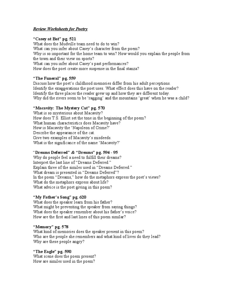Review Worksheets for Poetry “Casey at Bat” Pg. 521 What