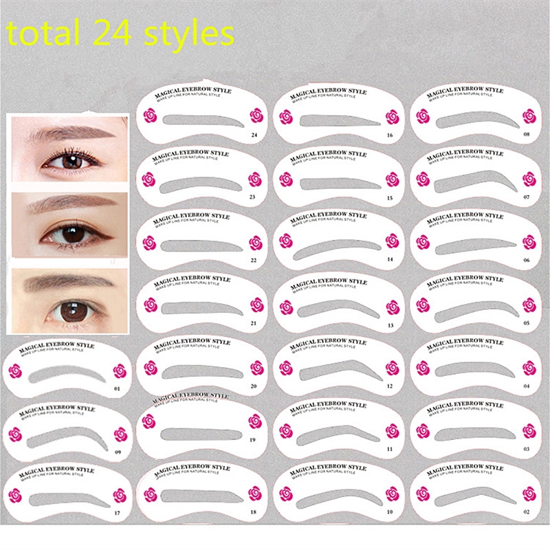 24 Pcs Pro Reusable Eyebrow Stencil Set Eye Brow DIY Drawing Guide