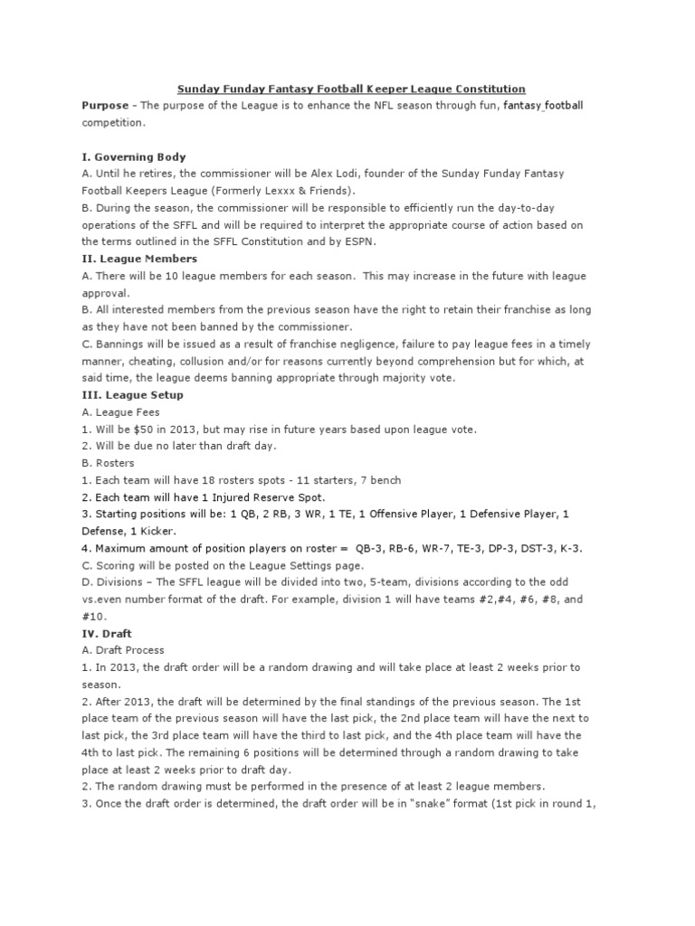 Fantasy Football Keeper League Constitution PDF Fantasy Football