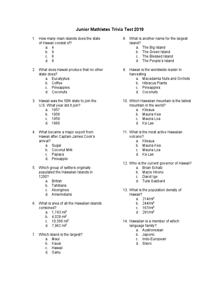 Hawaiian Trivia Questions And Answers Printable / Which state is the