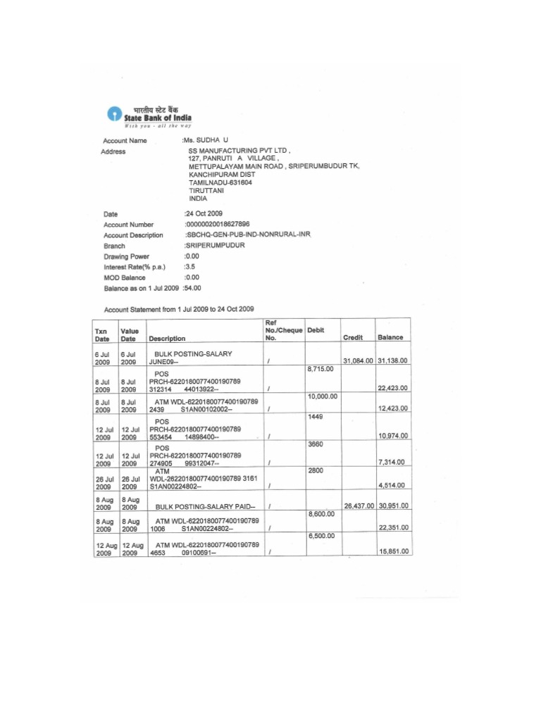 Basic Bank Statement Posibolt Solutions Pvt Ltd