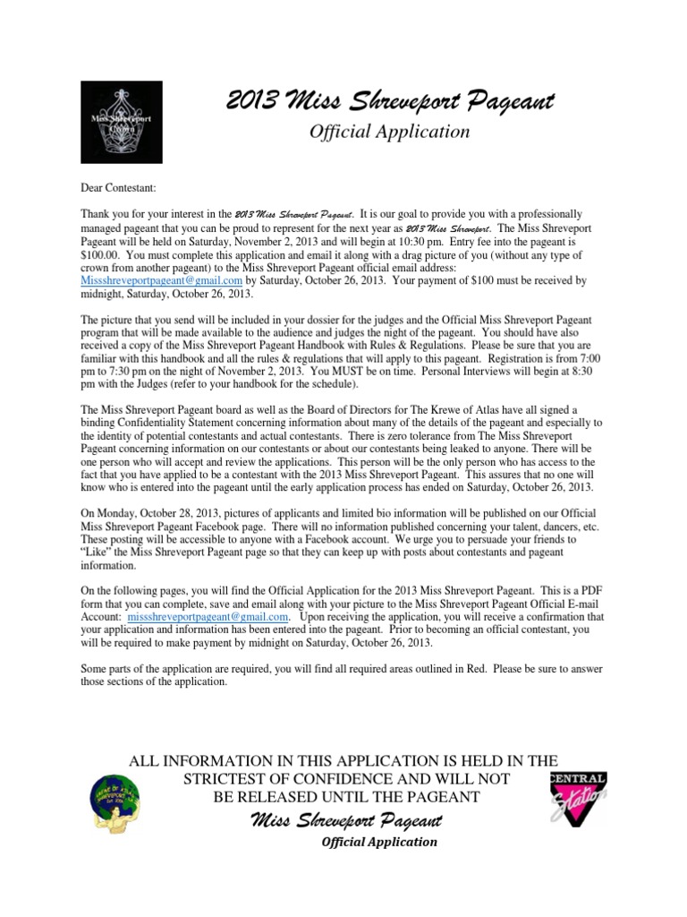Test Form Official 2013 Miss Shreveport Pageant Application Email