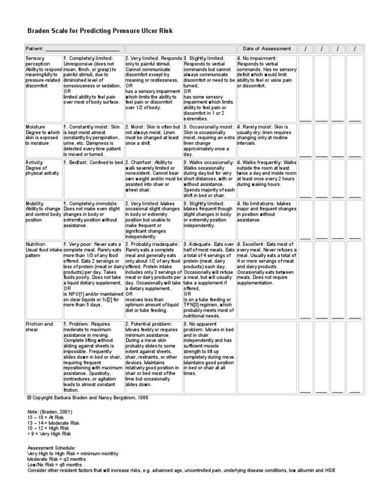 Web The Braden Scale Is A Scale That Measures The Risk Of Developing Pressure Ulcers.