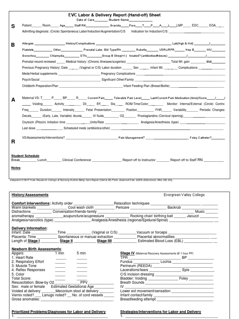 Labor and Delivery RN Report Sheet template. SBAR Handoff. Etsy