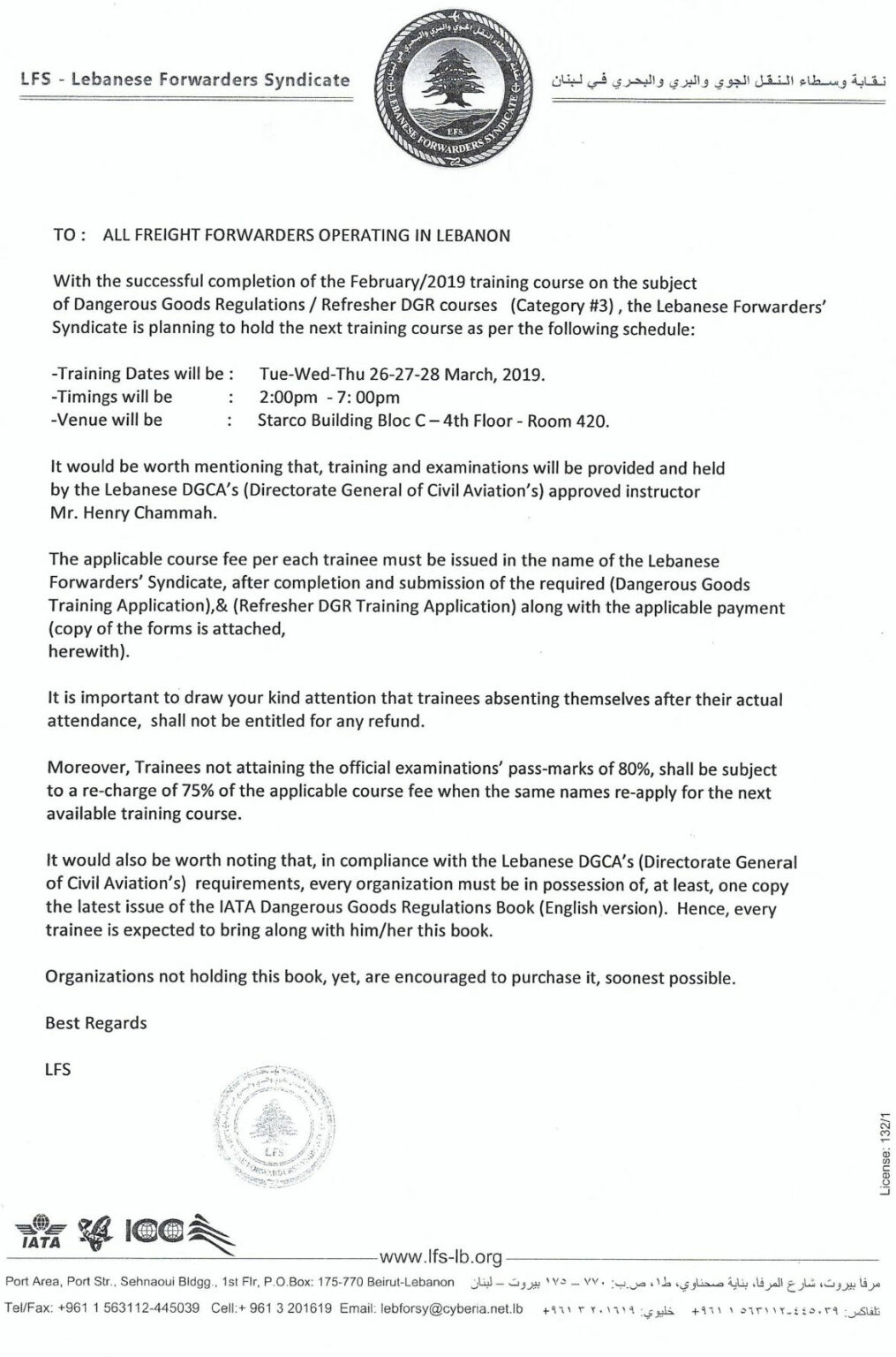 TRAINING ANNOUNCEMENT Lebanese Forwarders Syndicate