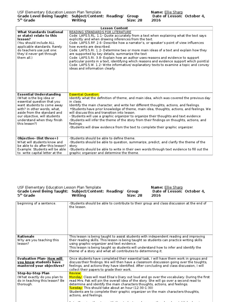 usf lesson plan template oct 4 Lesson Plan Reading (Process)